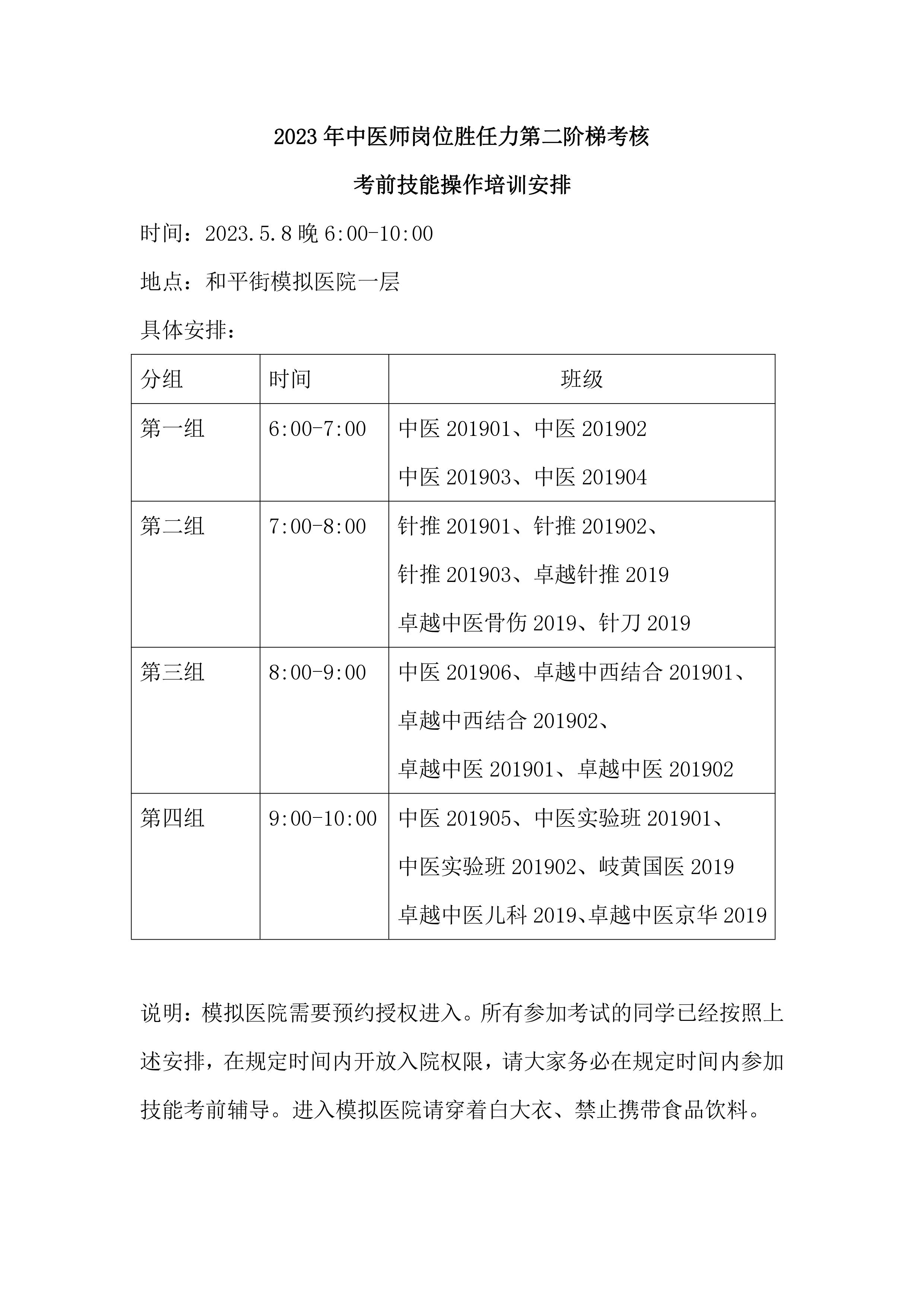2023年5月8日第二阶梯考核考前技能操作培训安排