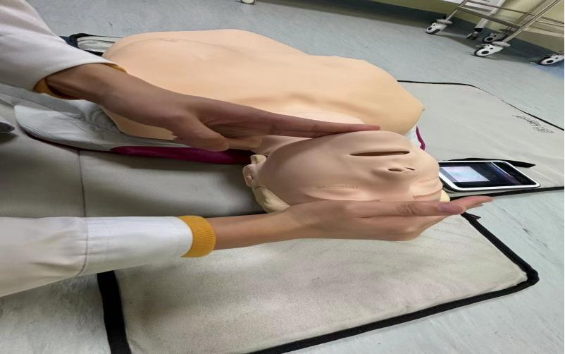 本次开放的内容是模拟心肺复苏操作流程,操作设备有心肺复苏模拟人、胸外按压反馈装置,学生在模拟人上进行胸外按压、开放气道、人工呼吸等操作,根据反馈装置提示确认按压操作是否准确,房间屏幕播放心肺复苏操作视频可供参考。