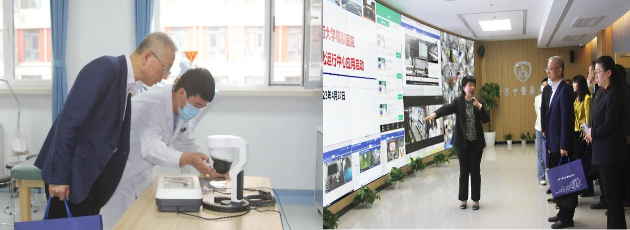闫永红处长围绕模拟医院“专业化”“现代化”“智慧化”“国际化”的建设目标,向大家详细介绍了模拟医院建设的理念、特色和功能定位。国家中医师认证中心副主任高靖、北京市卫生健康人力资源发展中心主任周峰、北京中医协会会长陈誩、国家中医药管理局综合司综合处负责人李杰等与会嘉宾对模拟医院的落成启用表示了祝贺,并希望日后与我校在中医药人才培养方面进一步深化交流合作。剪彩仪式之后,模拟医院院长李雁带领大家进行了实地参观考察。参观结束后,大家在远程会诊中心与厦门中医院裴晓华院长、江涛副院长等专家进行了云端连通,围绕模拟医院“四化一体”的教育教学现代理念对高等中医药教育模拟教学进行了深入研讨。
